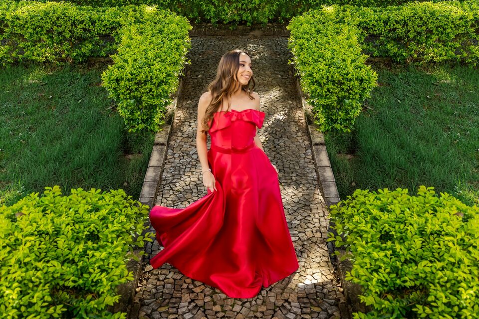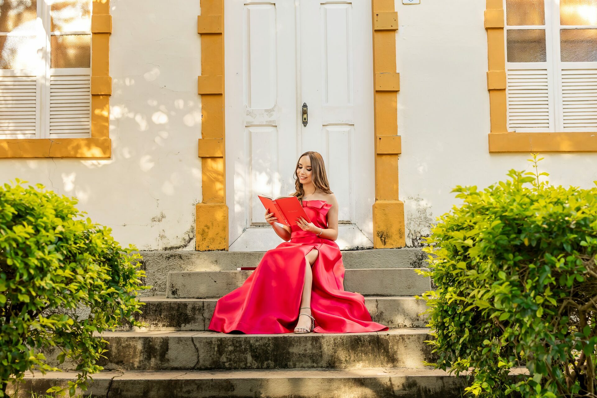 Além de ser uma excelente escolha pela praticidade, fotografar em locais que fazem parte da vida da debutante traz originalidade e emoção, fugindo de cenários comuns e criando algo verdadeiramente único.