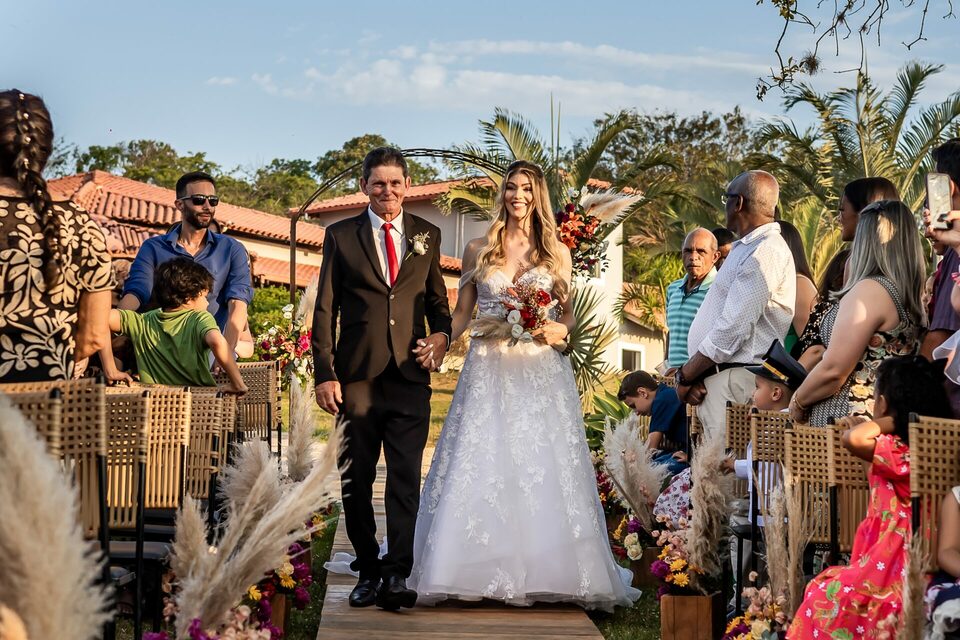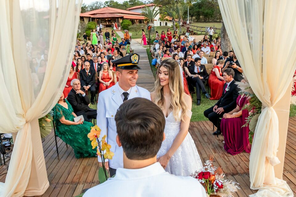 O cenário lindo do Espaço Cana Café proporcionou o palco perfeito para este dia inesquecível. A natureza generosamente se uniu à celebração, transformando o evento em uma sinfonia de cores e luz. Sob luz do sol, o casal trocou votos e promessas, cercados por uma atmosfera de serenidade e amor.