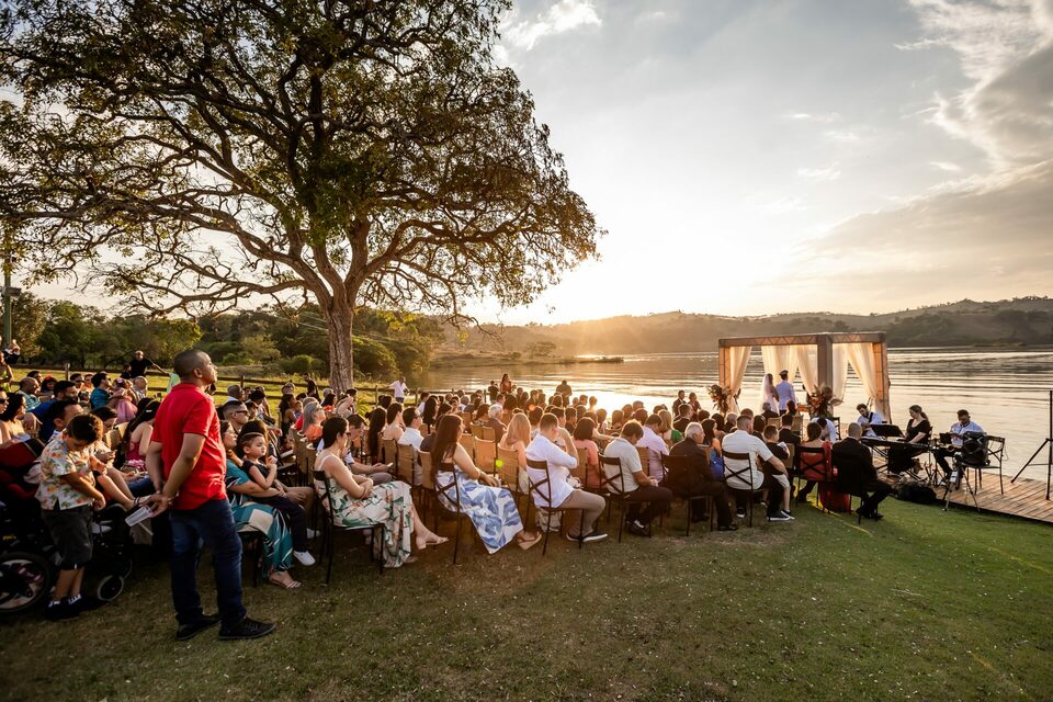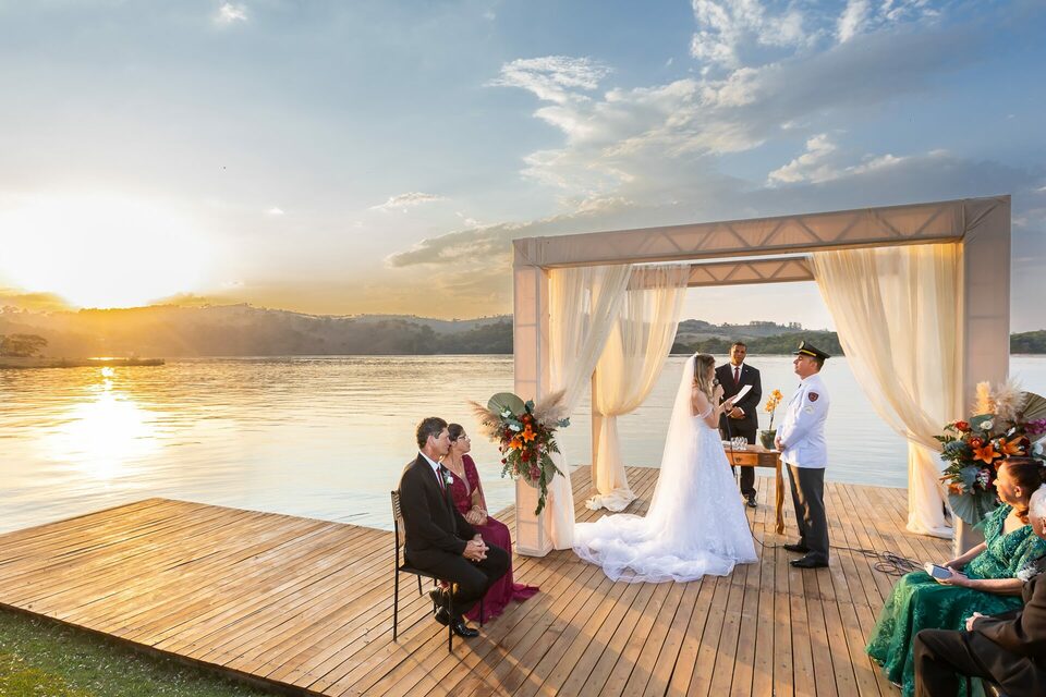 Às margens serenas de um lago que reflete a pureza do amor, testemunhamos um capítulo encantador de duas almas que se uniram no matrimônio. Este foi um casamento da Debora e Bruno , abençoado pelos raios dourados do sol, que iluminaram cada momento com uma magia incomparável.